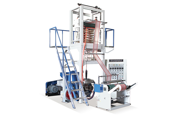 我廠生產的雙模頭彩條吹膜機組是由兩條螺桿料簡和一只模頭組合而成采用兩種母料配置吹制各種規格的彩條背心袋(采購袋)不需要印刷就能夠達到彩色化具有色彩鮮艷、線條均勻、結構合理、工藝先進、收卷平整、生產量高等特點,